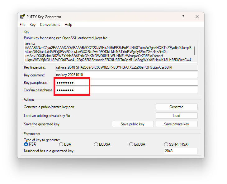 Независимо от того, устанавливали вы passphrase или нет, нажмите кнопку Save private key