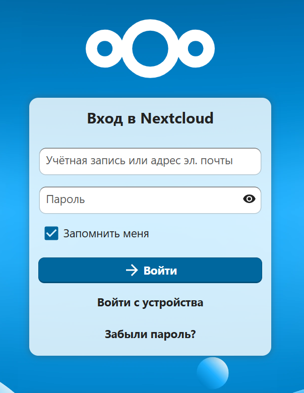 Подключение к веб-интерфейсу Nextcloud