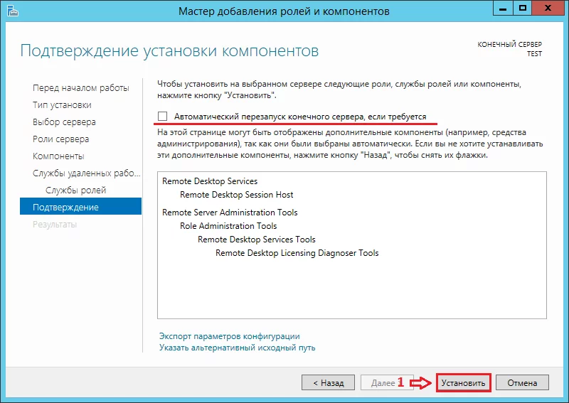 Установка роли Remote Desktop Session Host