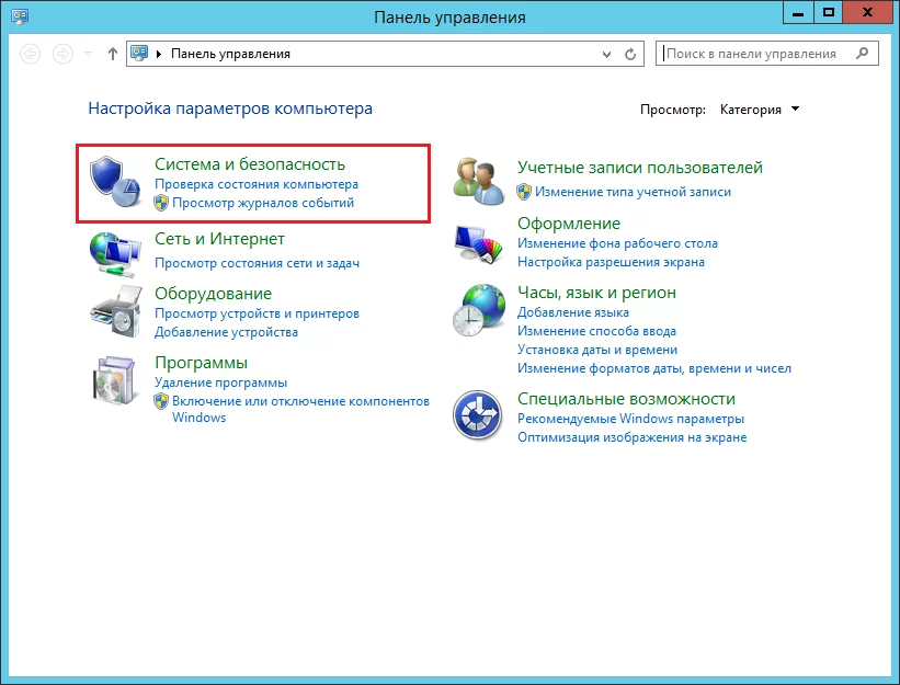 Сначала необходимо убедиться, что на сервере запущена служба Windows Audio. Для этого откройте «Панель управления», затем перейдите в раздел «Система и безопасность».