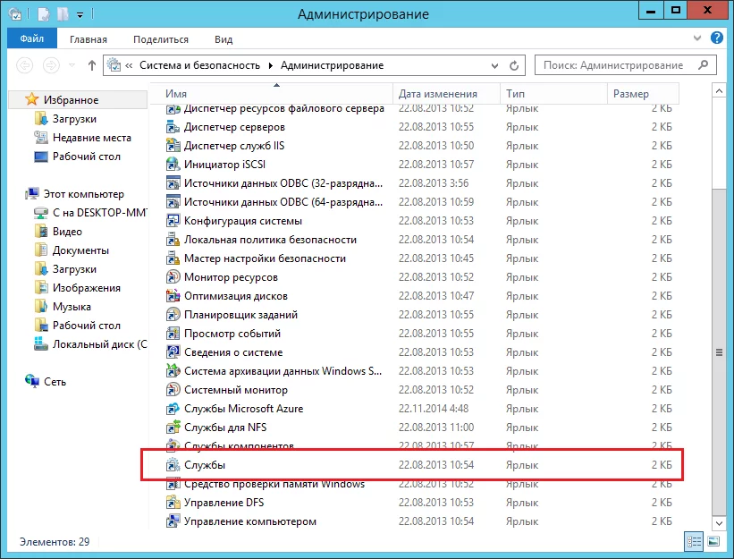 После этого откройте приложение «Службы».